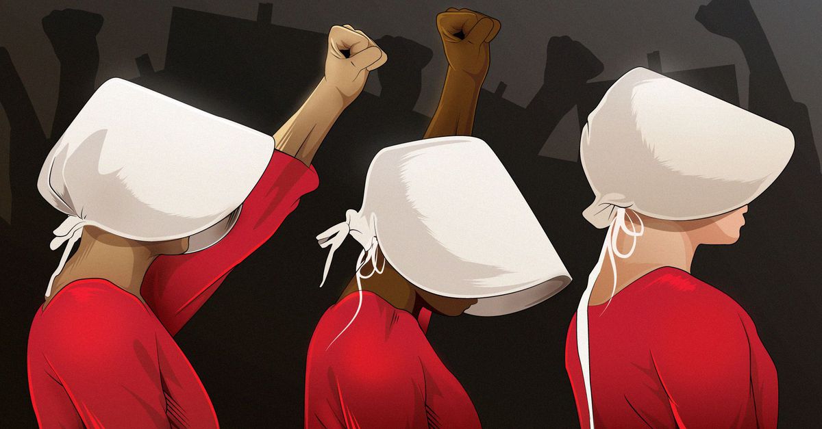 Jazzy red cloak. Wacky white bonnet. The perfect outfit for women in jeopardy. As political climate in the realm of reproductive heats up — again, The Handmaids Tale is becoming a little too close for comfort. Margaret Atwood’s book was dystopian fiction; real life is often much, much stranger. Inspired by the sociopolitical issues of 1970 and ’80s America, as well as a little-known a 17th century woman, I’m sure Atwood never imagined it could become a playbook for current events. But for years, politically and religiously radical movements have been brewing a perfect storm.